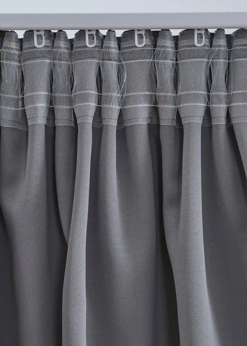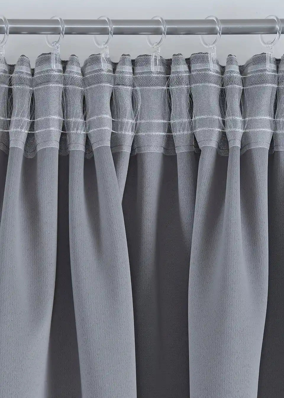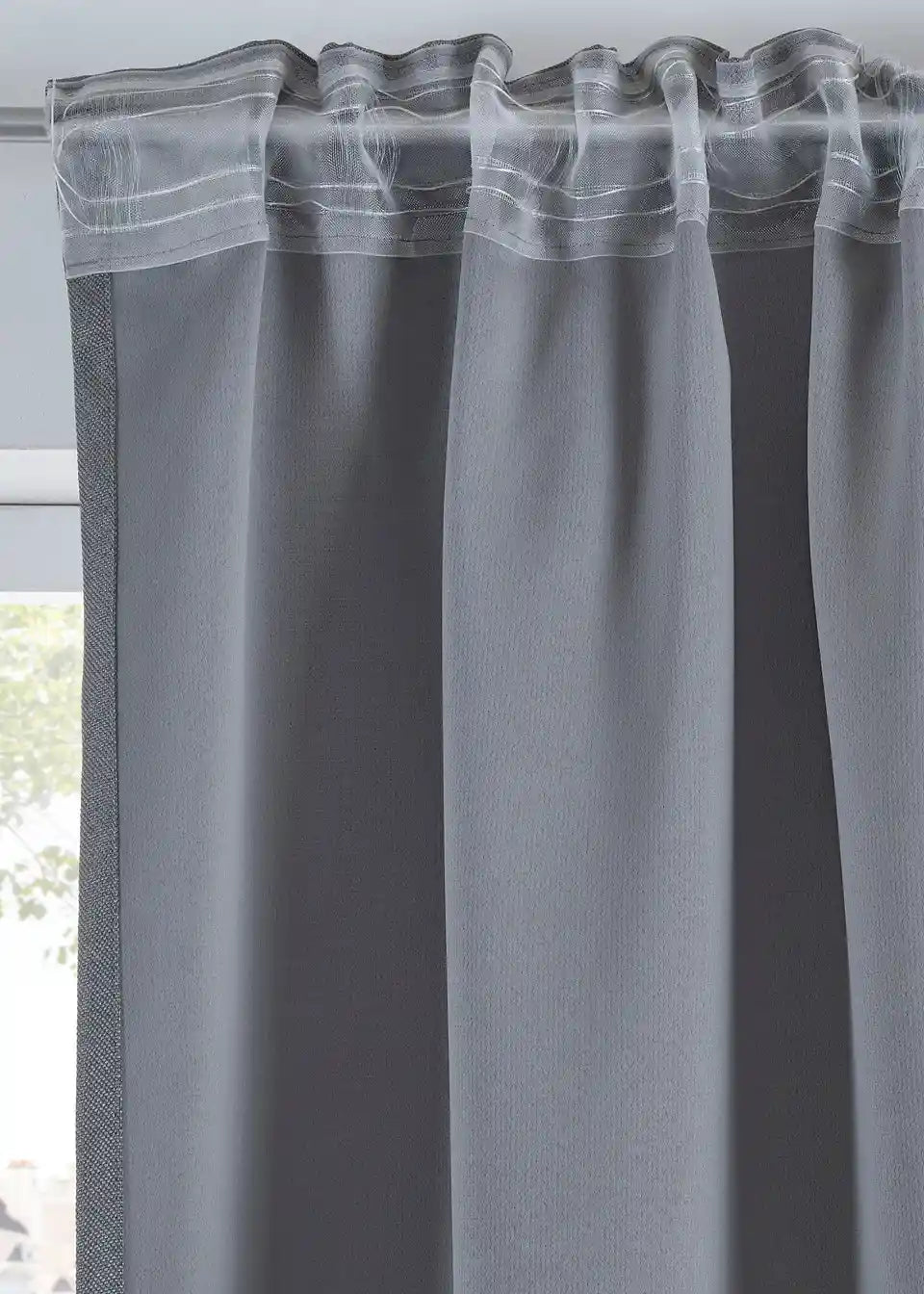 Ta zavesa je zelo moderna, saj sta tako barva kot tudi struktura tkanine v skladu z najnovejšimi trendi. Rahla bleščečnost ji daje prefinjen videz.