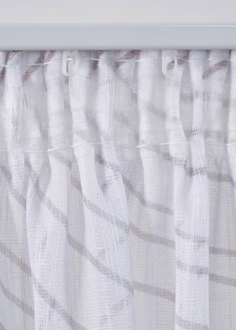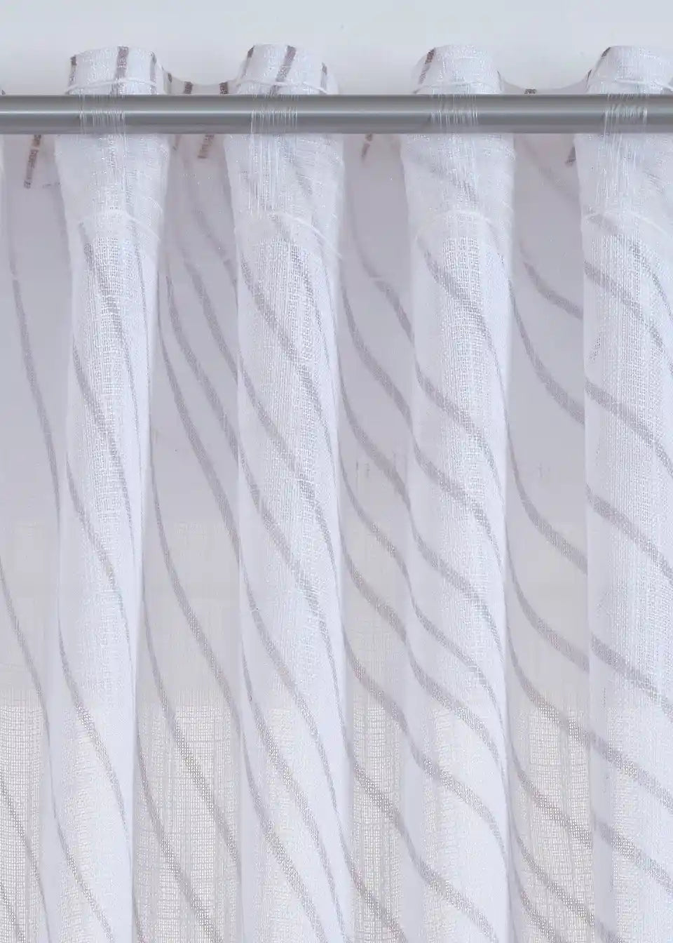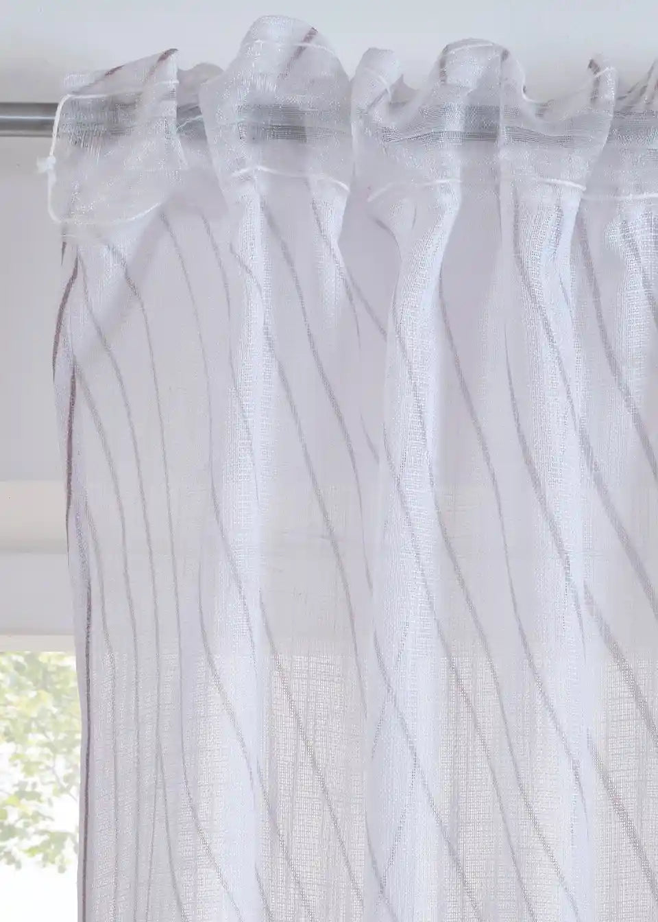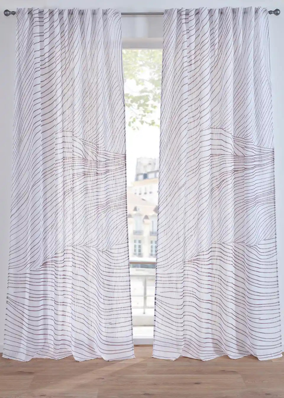 Zavesa z modernim potiskom je izdelana iz kakovostne strukturirane tkanine, ki nudi rahlo zaščito pred pogledi, ne da bi pri tem potemnila prostor.