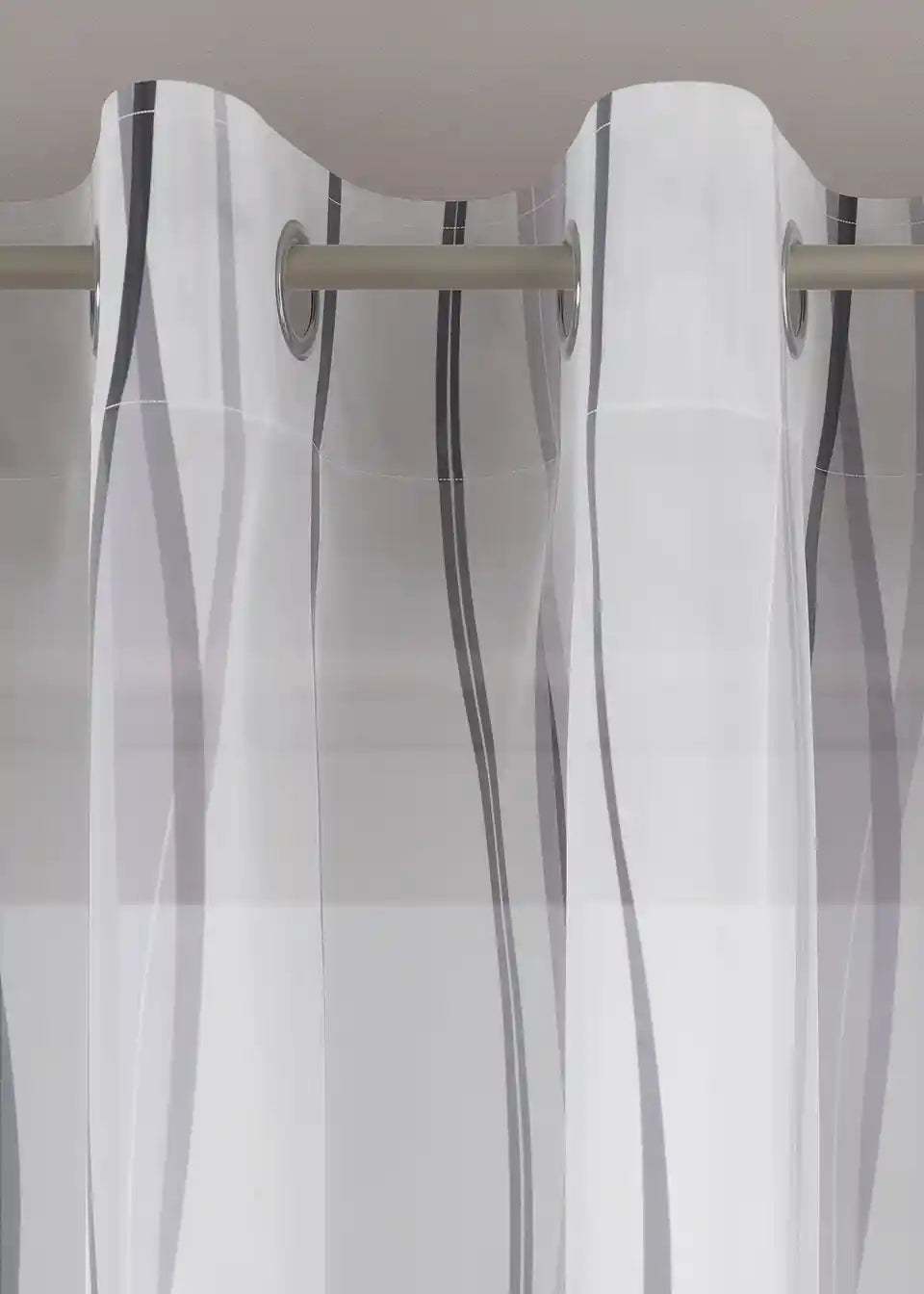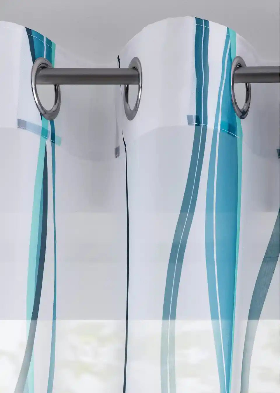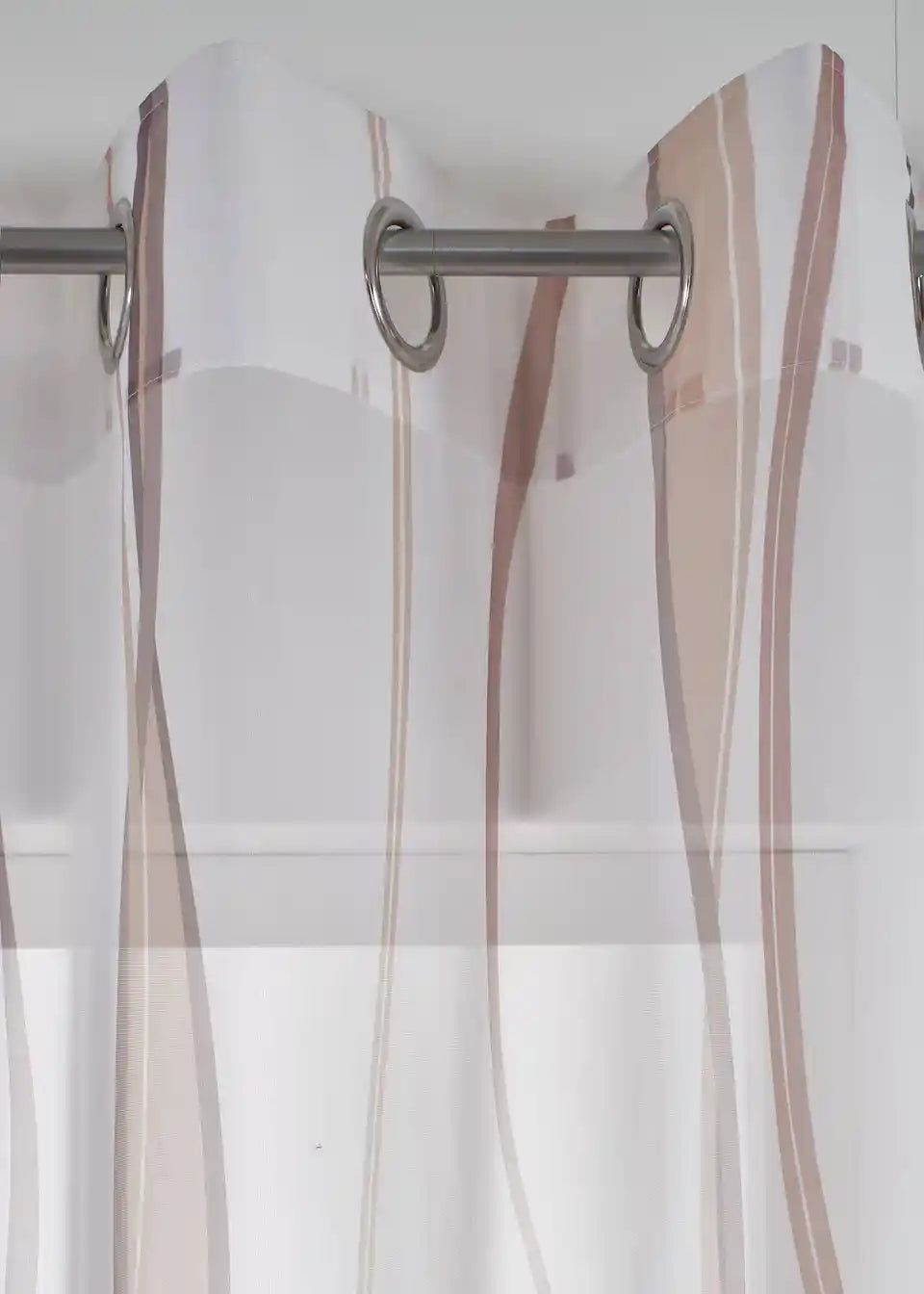 Prepustna za svetlobo, kremno/belo osnovana zavesa z barvnimi poudarki, v privlačnih barvnih različicah, iz zračne, lahke vojlee kakovosti. Odlična za kombiniranje! Zavesa je vsestranska, saj se poda k številnim notranjim opremam in ima brezčasen dizajn.