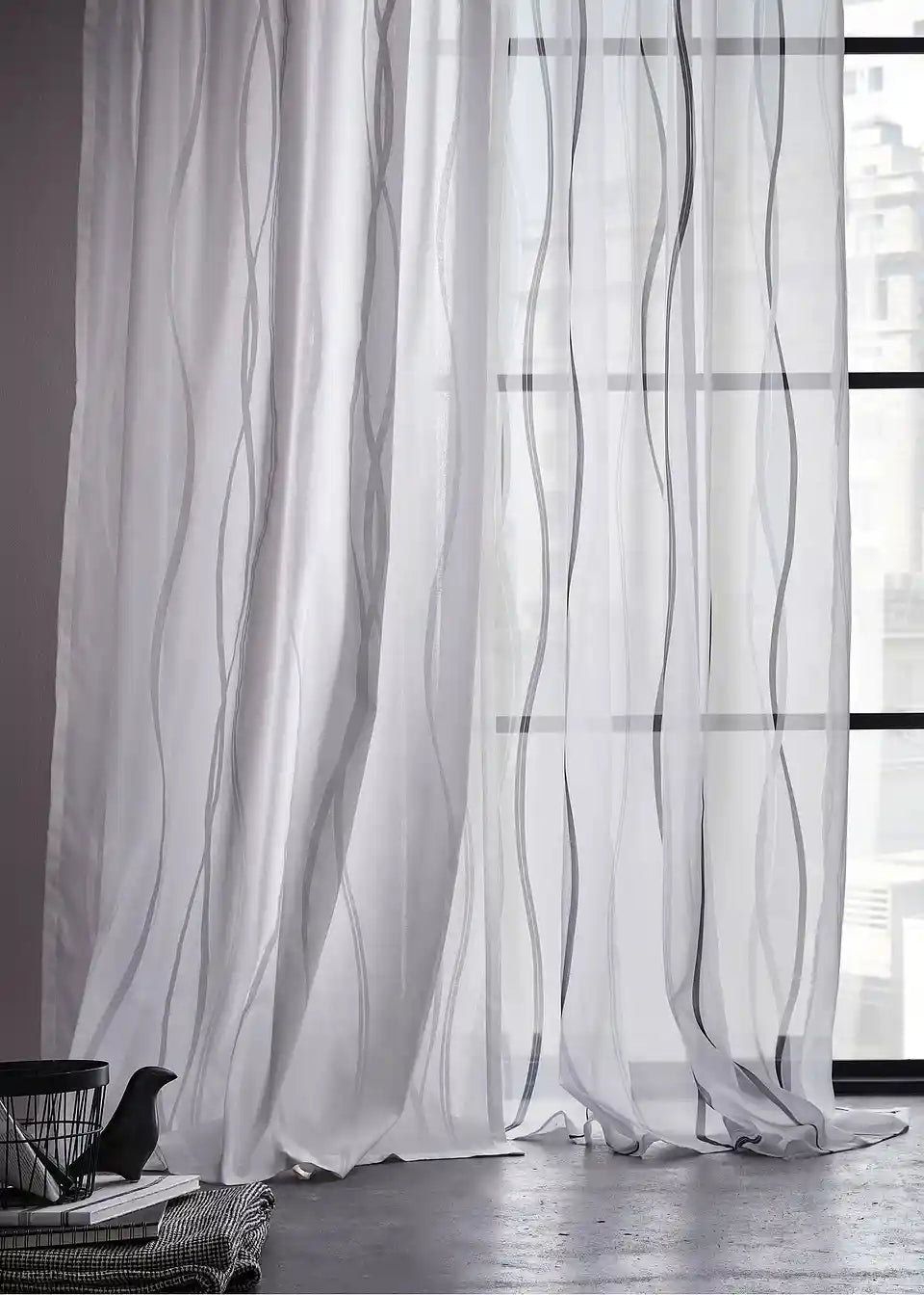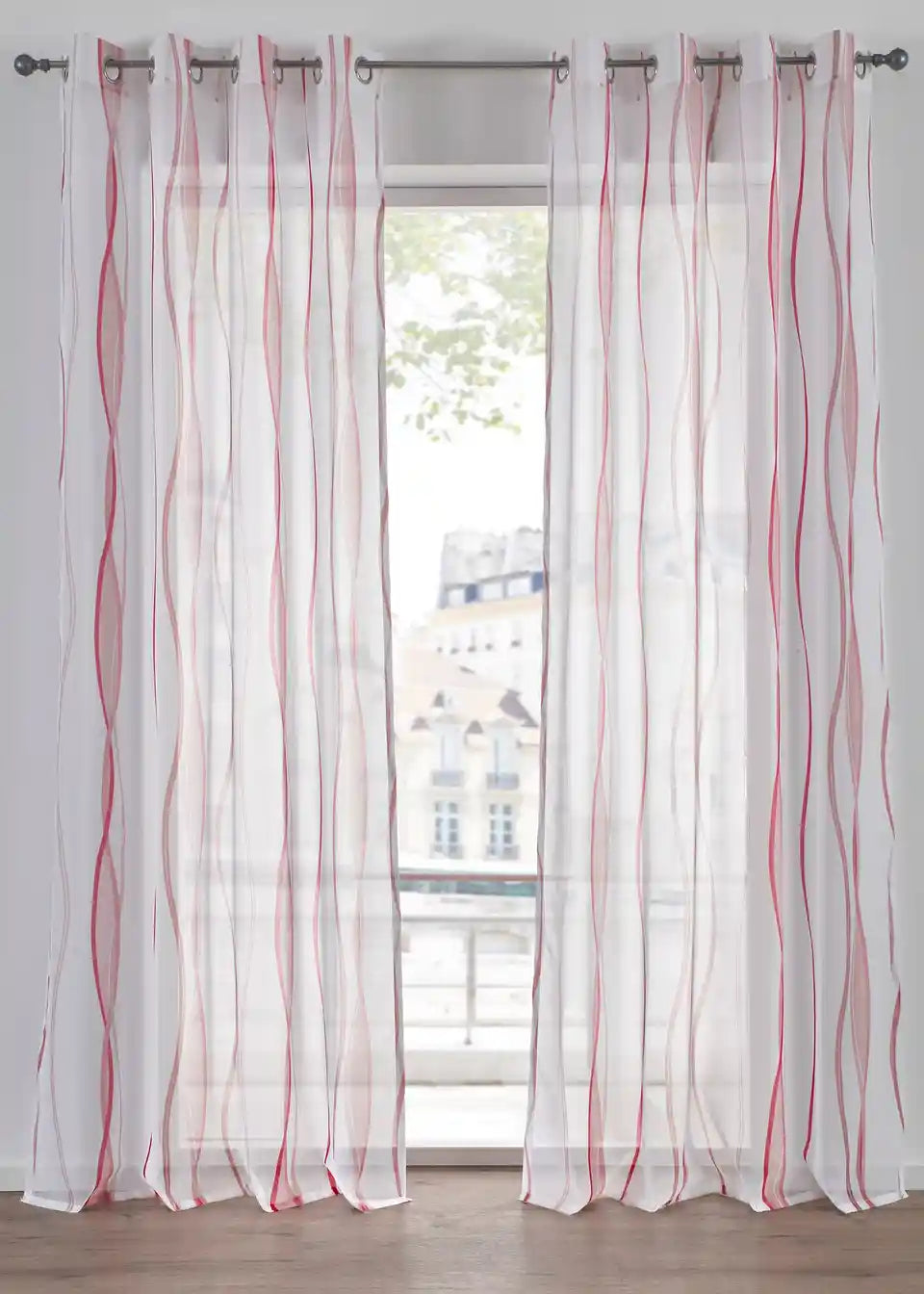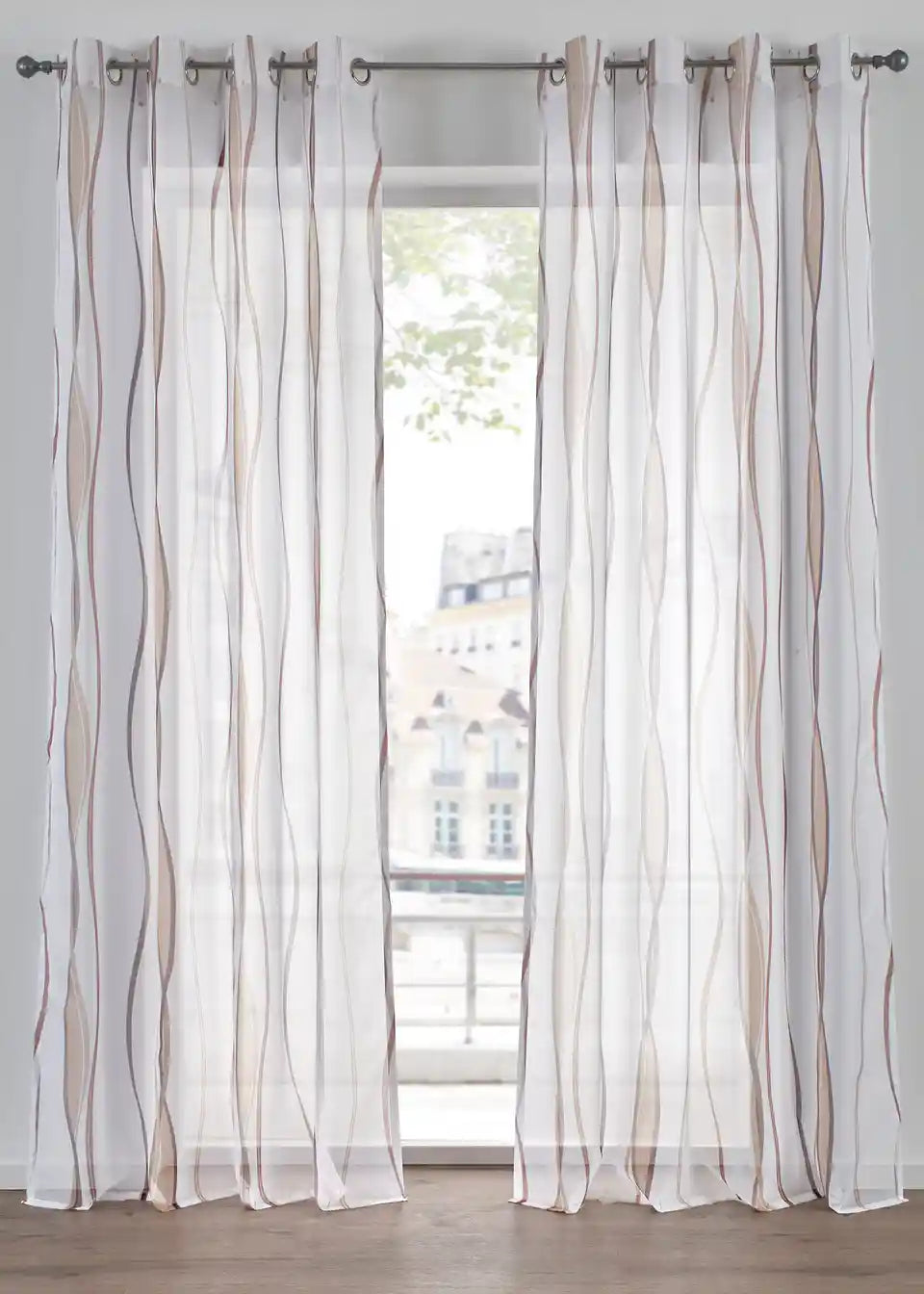 Prepustna za svetlobo, kremno/belo osnovana zavesa z barvnimi poudarki, v privlačnih barvnih različicah, iz zračne, lahke vojlee kakovosti. Odlična za kombiniranje! Zavesa je vsestranska, saj se poda k številnim notranjim opremam in ima brezčasen dizajn.