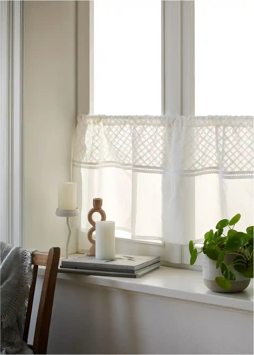 Polovična zavesa iz ekološkega bombaža z vezenino