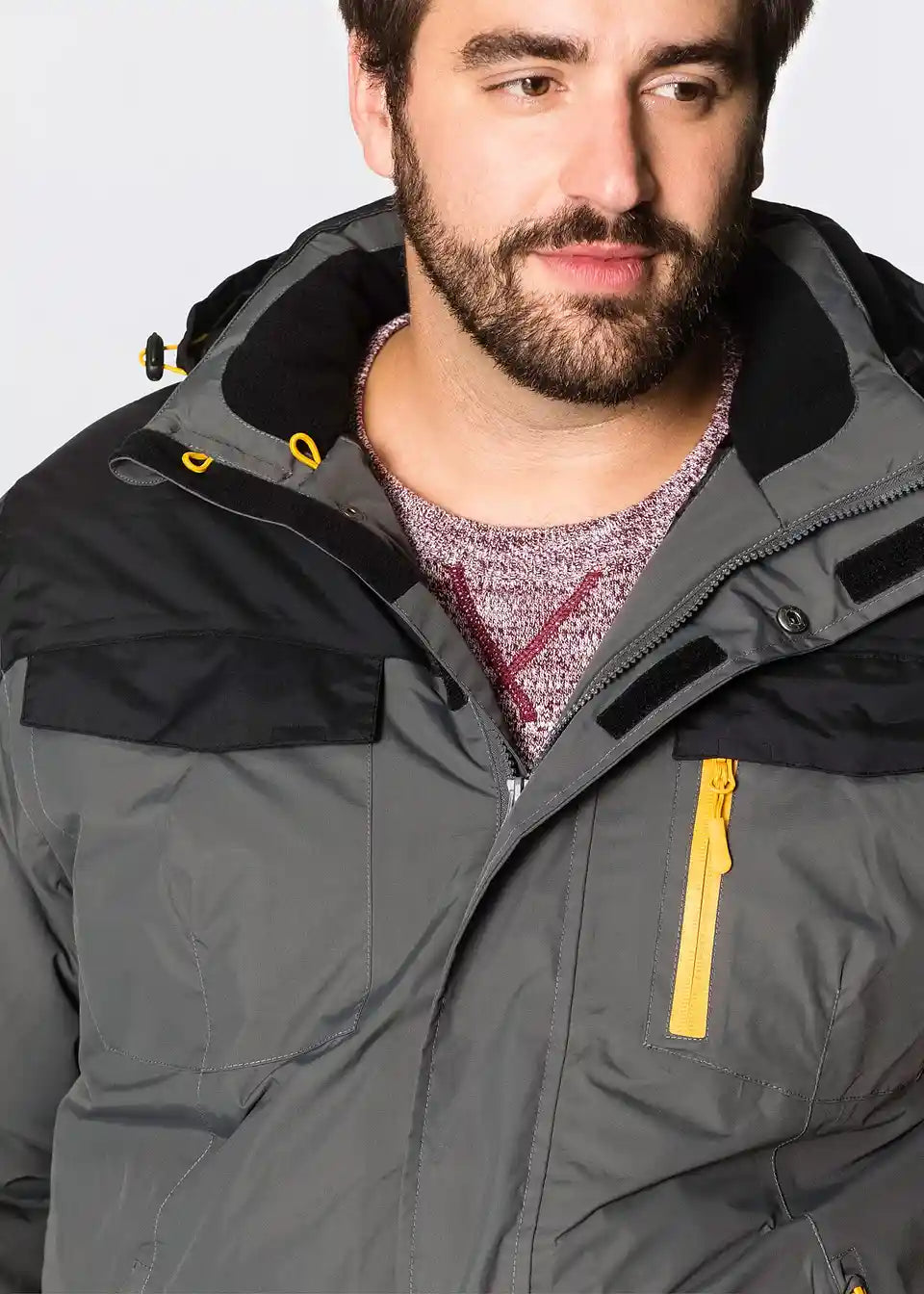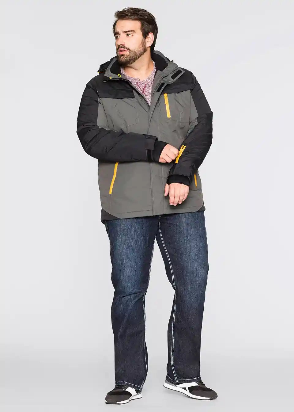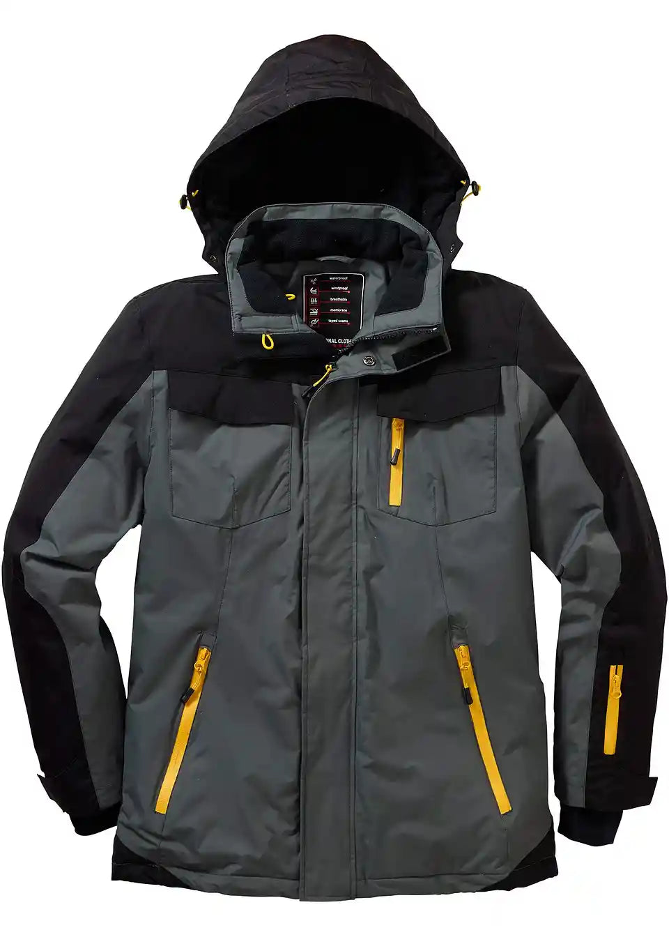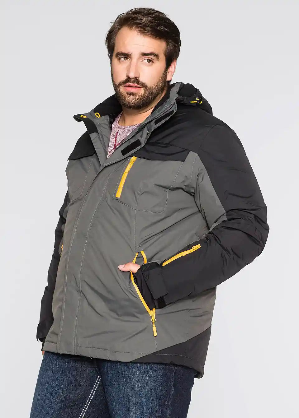 Atraktivna zimska funkcijska jakna združuje uporabnost z modnimi vidiki. Zaradi materialne kompozicije, primerne za uporabo na prostem, je jakna zračna ter odporna proti vetru in vodi do 3.000 mm vodnega stolpca. Zatesnjeni šivi in snemljiva kapuca dodatno ščitijo pred vlago in prepihom. Moška zimska funkcijska jakna blagovne znamke bpc ima skrit dvosmerni zadrgo za enostavno zapiranje. Dve žepi spredaj, en žep na prsih, en žep na rokavu z odsevnim tiskom in dva notranja žepa so praktične podrobnosti za na pot.