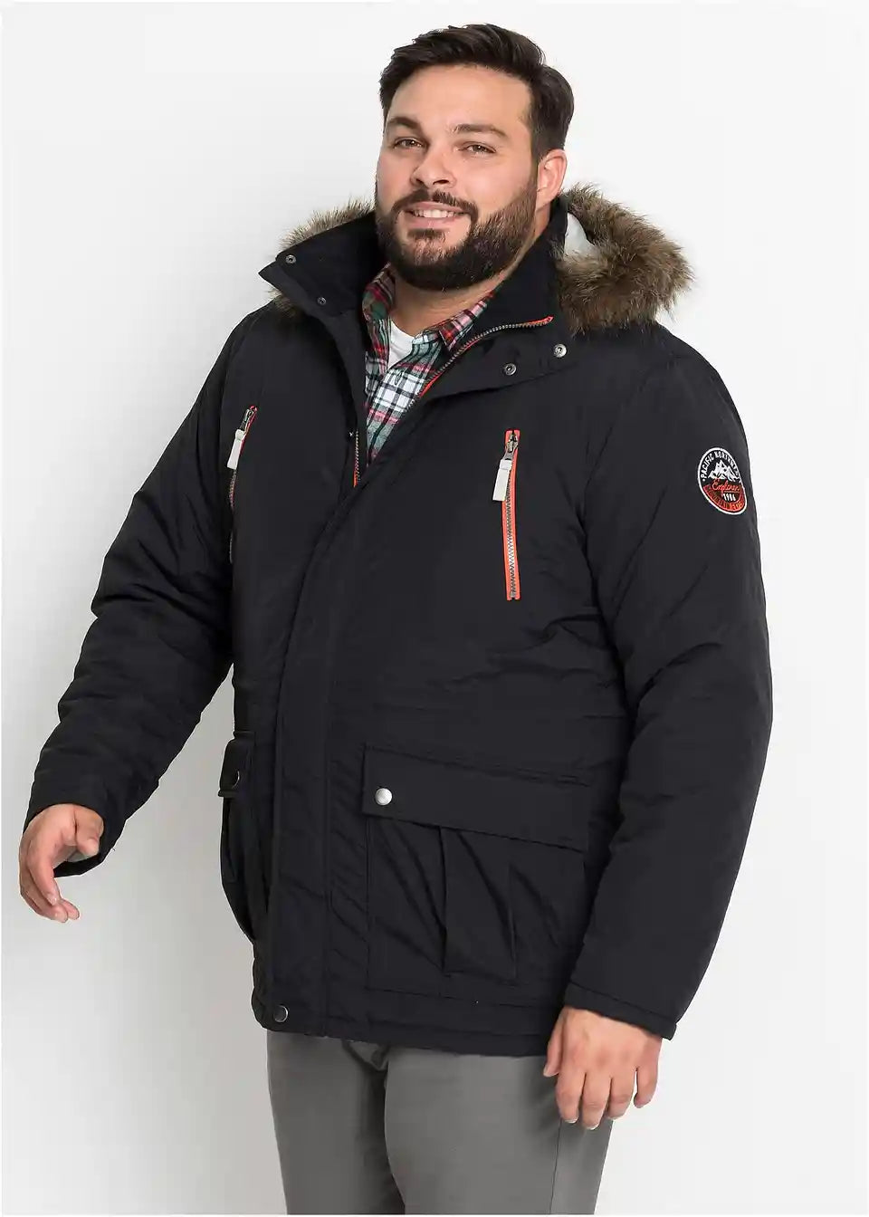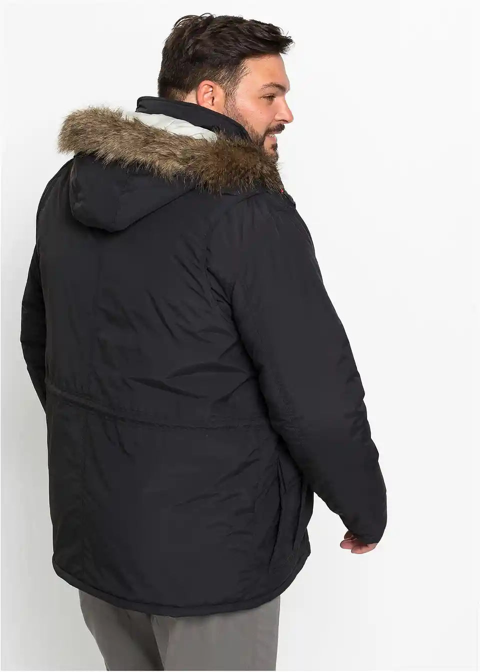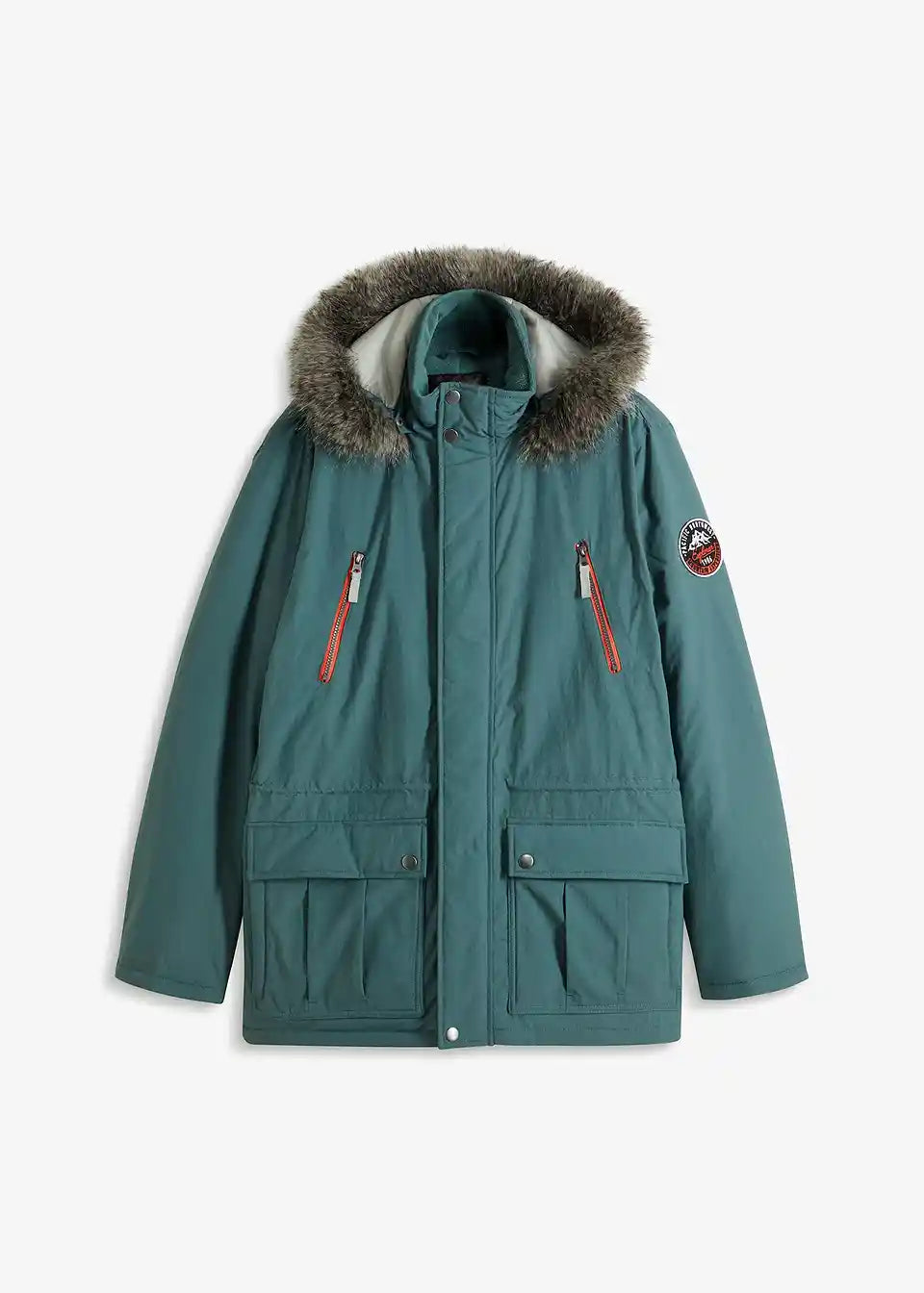 Moški bodo z to kul moško jakno znamke bpc zlahka preživeli hladno sezono. Športna parka Regular Fit je podložena in se ponaša s številnimi žepi: dva našita žepa z zavihki in dva stranska žepa z zadrgo. Kapuca je obrobljena z mehkim umetnim krznom. Na rokavu majhen emblem pritegne pozornost. Podložena parka Regular Fit se zapenja z skrito zadrgo in dodatnimi pritiskači.
