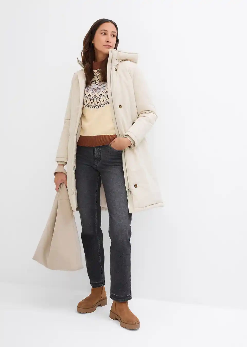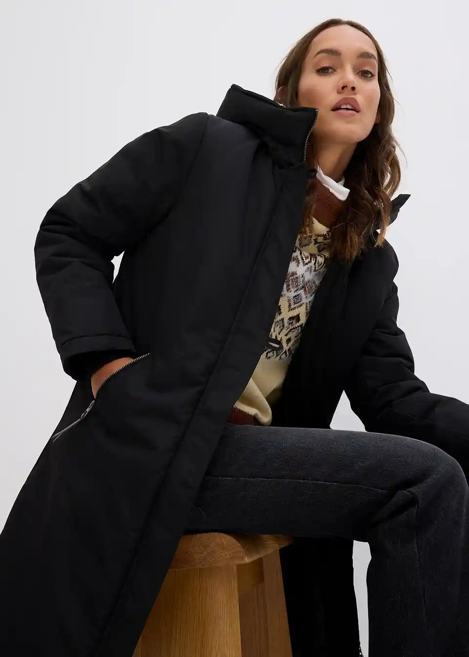 Zimski plašč z umetnim ovčjim krznom