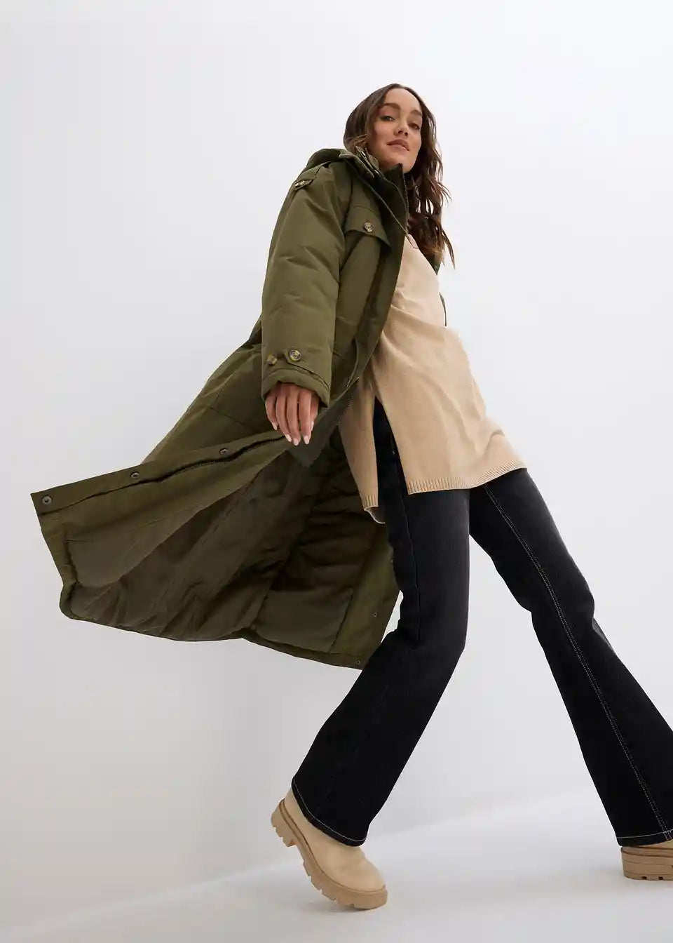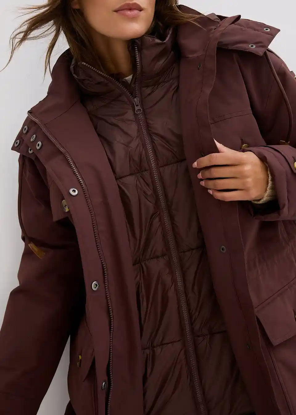 Zimski plašč v dvoplastnem videzu