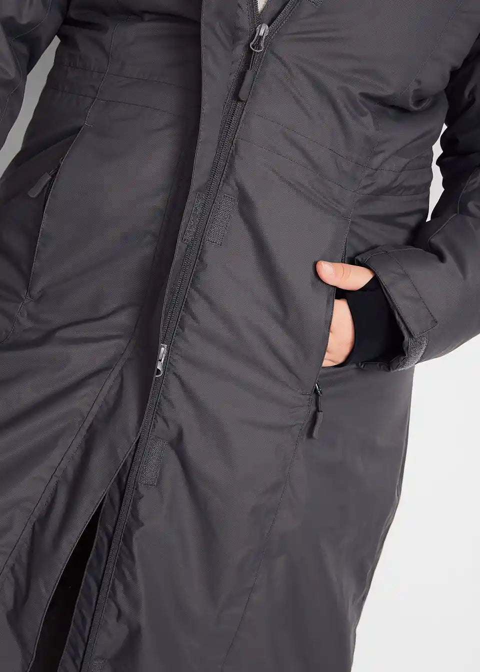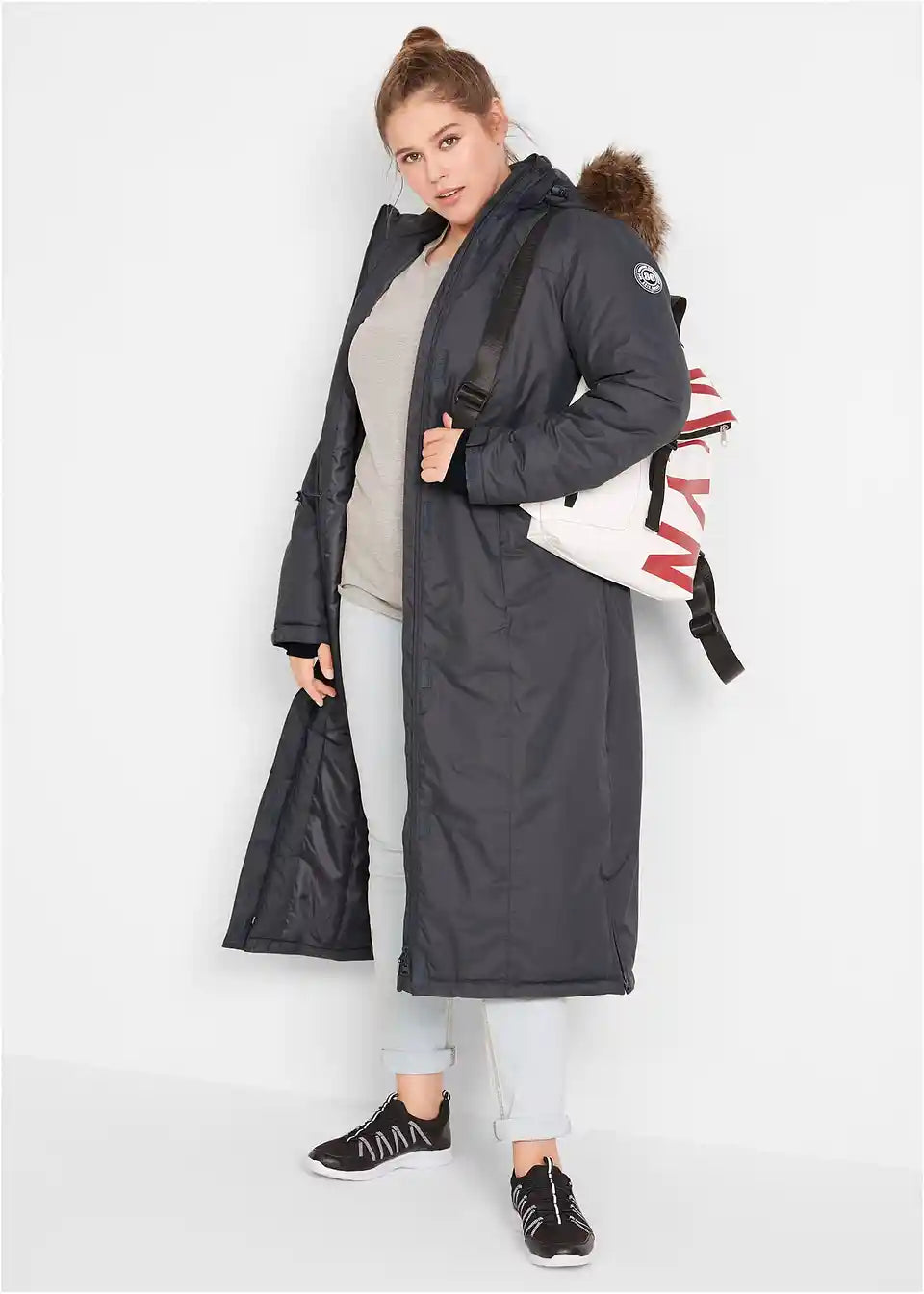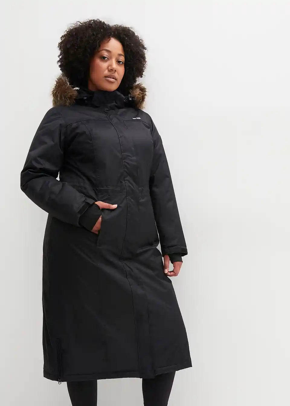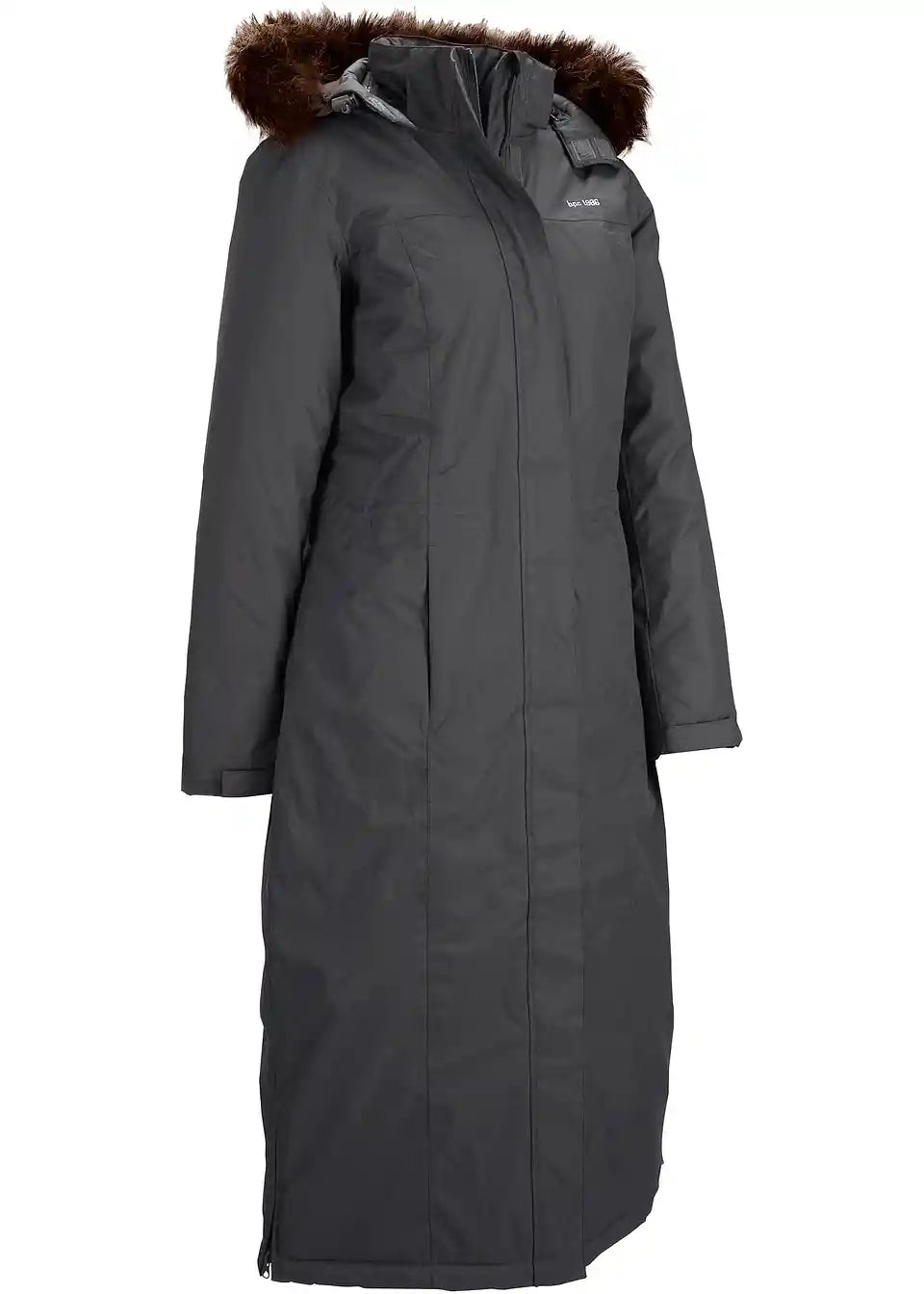 funkcionalen dežni plašč z nastavljivo širino, snemljivo kapuco in krznom