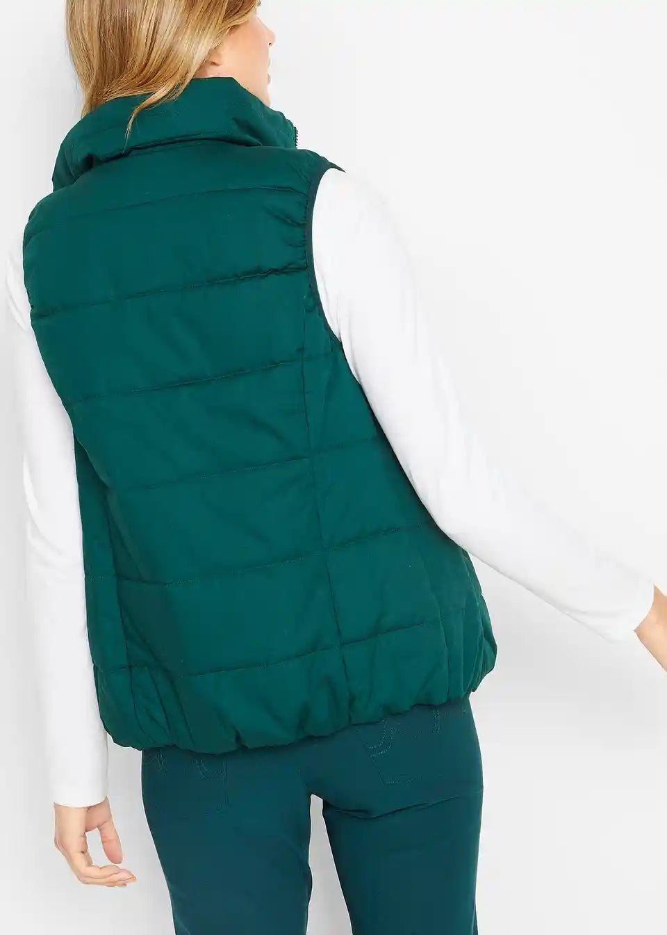 Kratek prehodni telovnik z detajli iz imitacije usnja