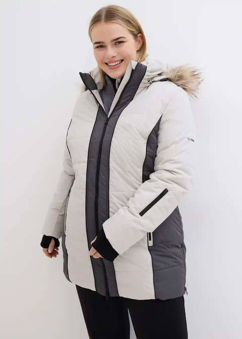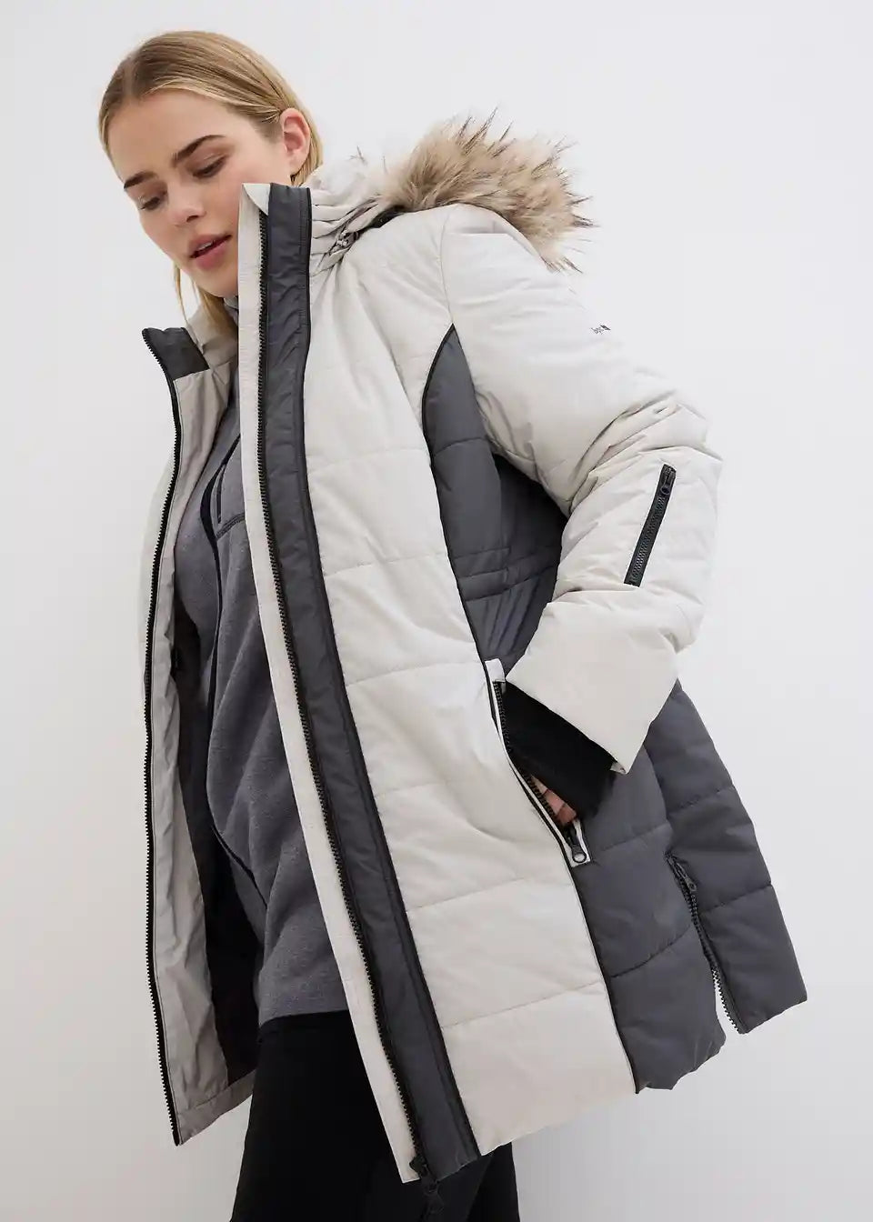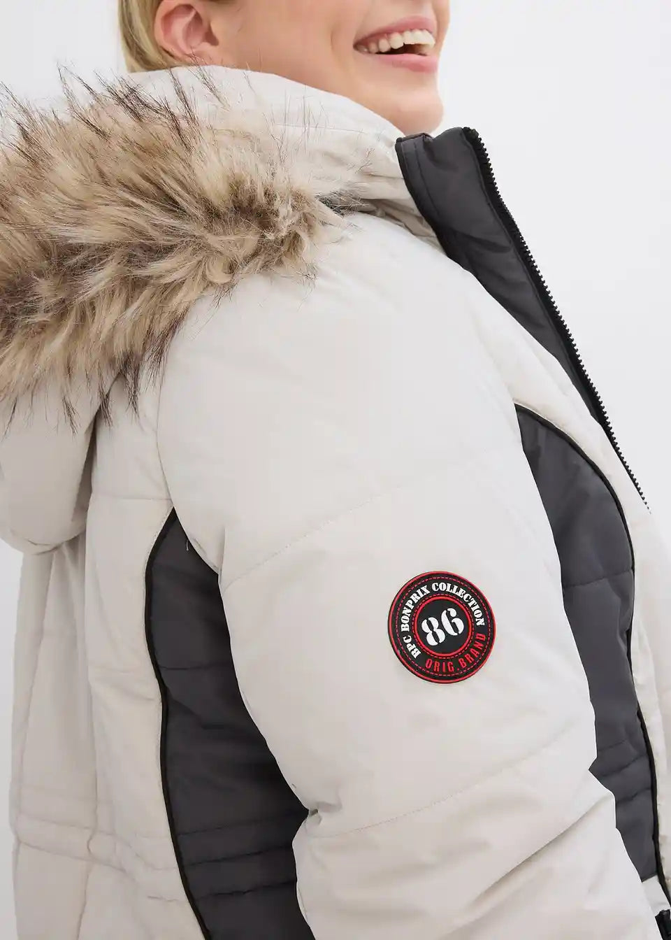 Za zunanje aktivnosti primeren kratek plašč z umetnim krznom iz vodoodpornega materiala