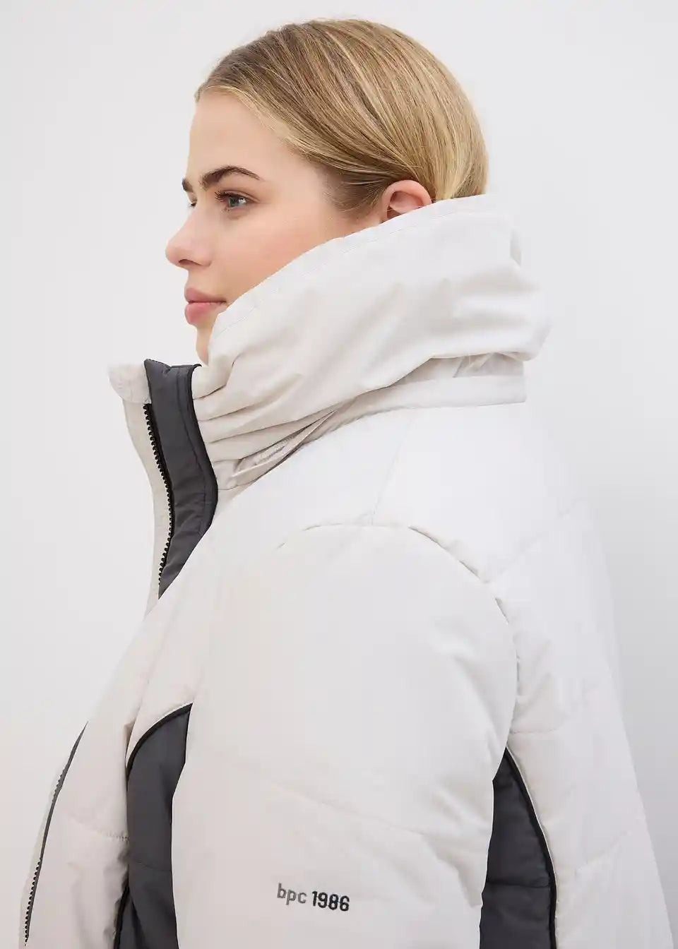 Številni praktični detajli odlikujejo ta zunanji plašč znamke bpc. Zračen model je idealen za zaščito pred vlago in mrazom. Vodoodbojen in odporen na veter, s kontrastnimi detajli in snemljivo kapuco, je plašč zanesljiv sopotnik za dejavnosti in dogodivščine. Luknje za palce na manšetah omogočajo dober oprijem. Več notranjih žepov in žepov z zadrgo ponuja obilo prostora za varno shranjevanje pripomočkov, kot so ključi, telefon in denarnica. Posebna značilnost je dodatno držalo za slušalke na notranji strani.