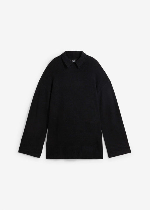 Pulover s puli ovratnikom z okrasnimi rokavi iz šifona