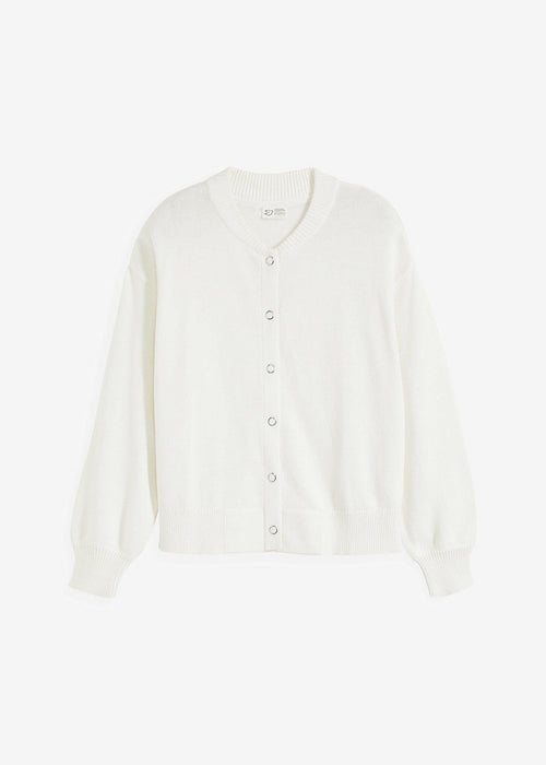 Richtig tolle, dicke Strickjacke aus reiner Baumwolle (!) mit flotten Druckknöpfen. Taschen hätten sie perfekt gemacht, Größe passte, hat ein bisschen was von einem Blouson.
